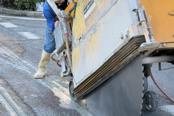 道路や床版などのコンクリート・アスファルトを、設計図や施工計画に基づき、正確な寸法で切断する工事です。
