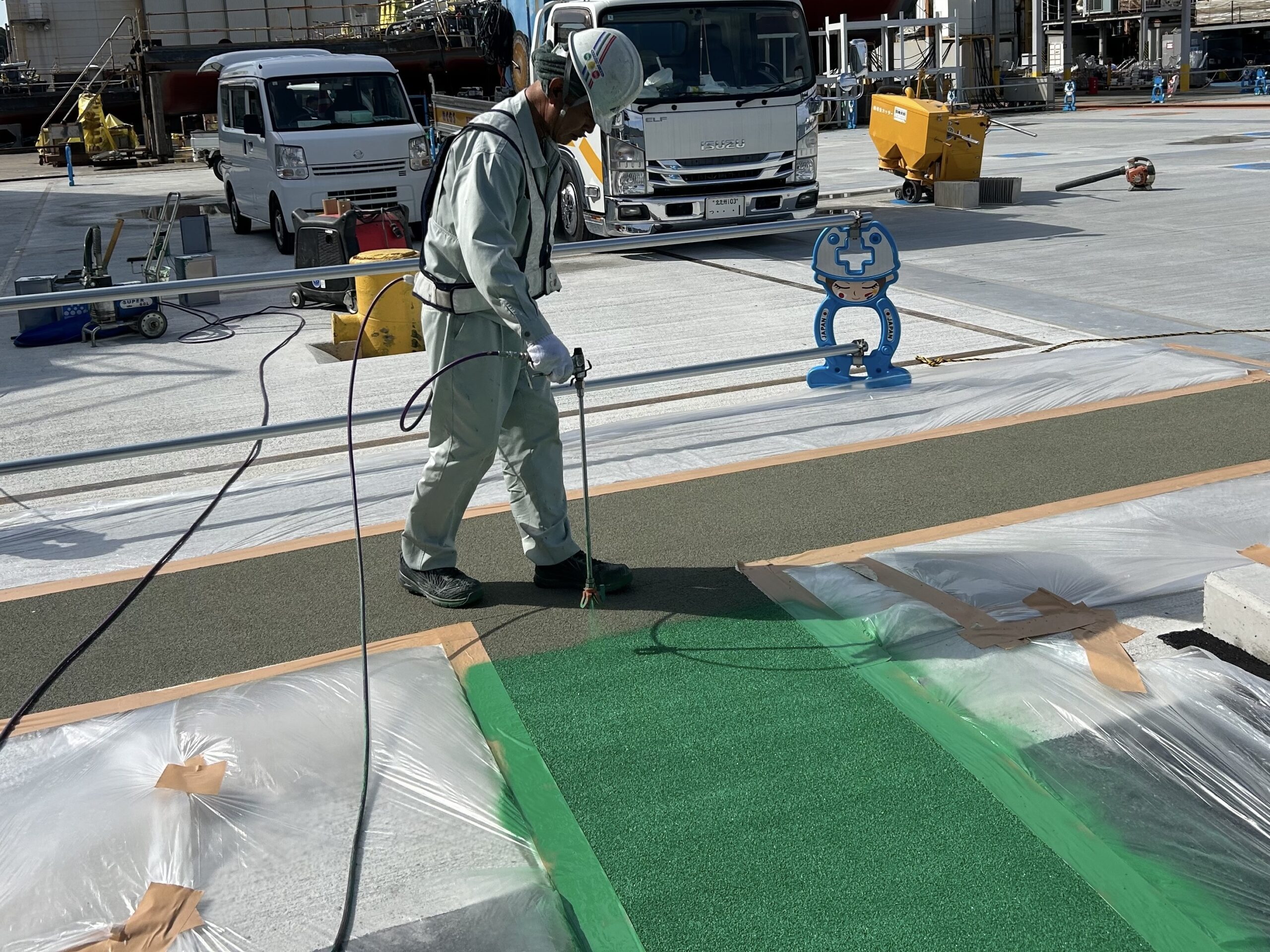 道路や歩道に色を施すことで目視性を高め、交通事故の防止や通行区分の明確化に効果を発揮します。